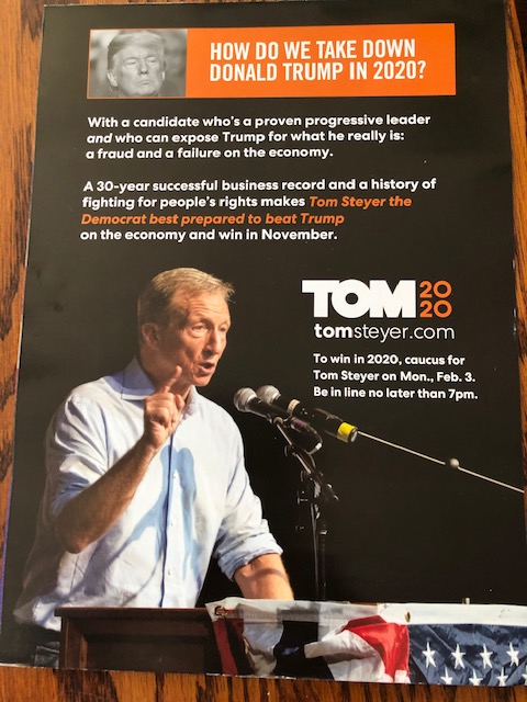 Just for fun, here’s the mail I got from candidates this past week, in no particular order. I think Warren has sent the most and apparently Bernie hasn’t sent a thing. See any you like? They’re coming your way soon, no doubt.