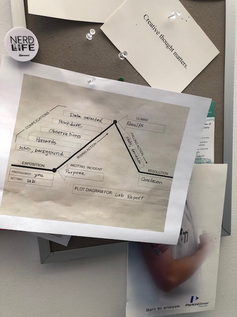 I applied the plot diagram to a weekly lab report assignment. Here it is on my tackboard: