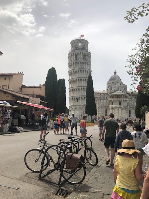 Galileo was born in Pisa. The airport there is named after him along with a highway to get there. He’s much more famous for perfecting the telescope and convincing people that the Earth travels around the Sun, but the Leaning Tower is where he did his weight dropping experiment. And it’s a delight to behold. I visited there along with several family members, including kids.